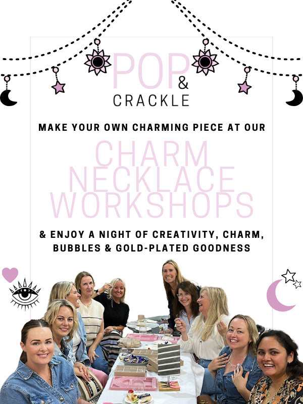Join us for a golden hour of creativity, connection, and charm (literally!) at Pop & Crackle’s newest workshop offering: The Charm Bar!